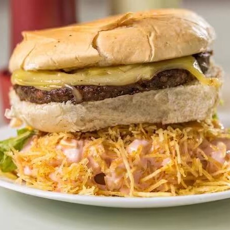 Pão macio com hambúrguer de 90g grelhado, mussarela derretida, batata palha crocante, salada fresca e molho especial da casa. Sabor na medida certa!