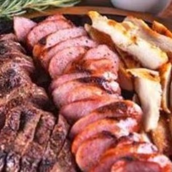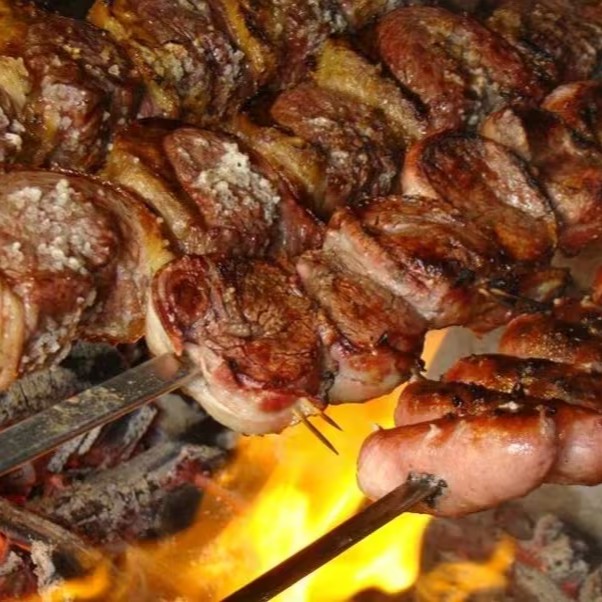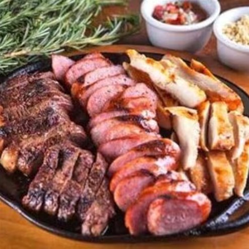 400 gramas de churrasco (Linguiça, Frango , Lombo e Boi)