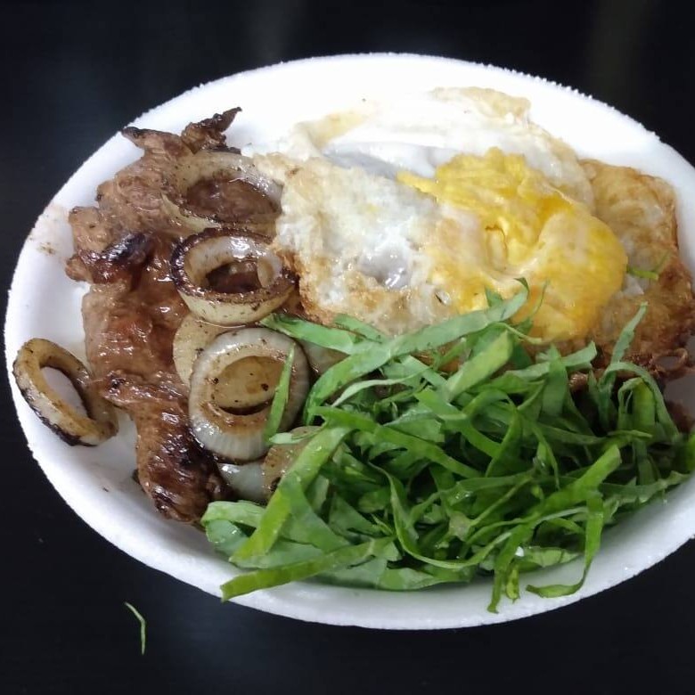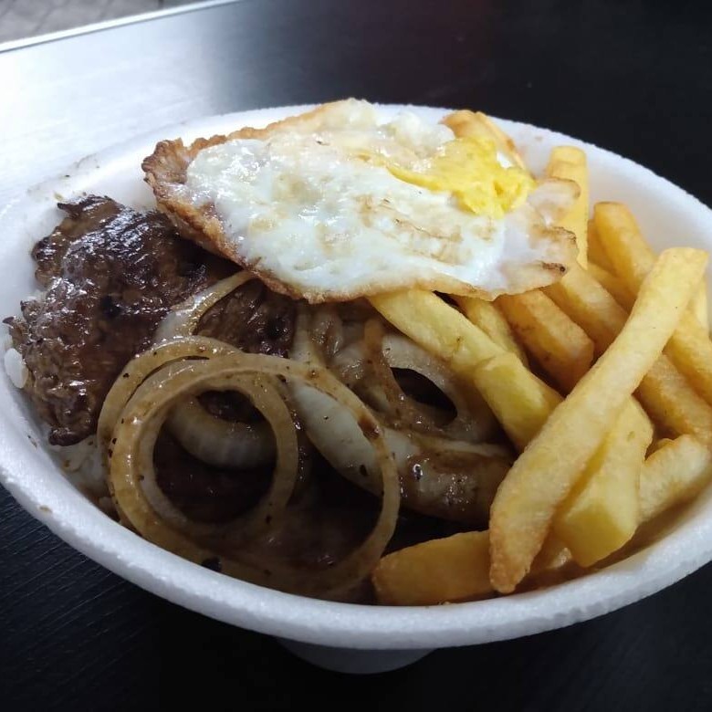 Marmitex Bem Caprichado_ Arroz, Feijão, Farofa, Macarrao, Couve, Bife De Boi Acebolado E Salada.