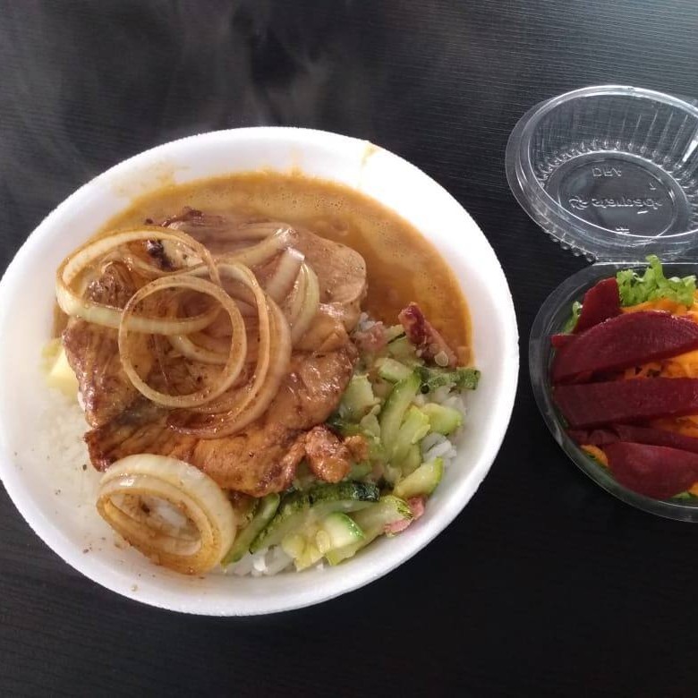 Marmita P Opcao 1 Com Bife De Boi Acebolado 500 Ml