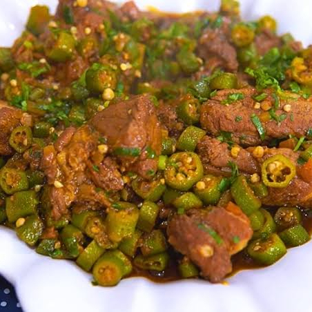 Suculenta costelinha com quiabo e angu, acompanha arroz e feijão