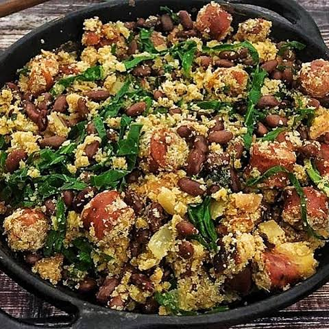 Marmita de 750ml, delicioso tropeiro acompanha arroz,bife de pernil,ovo frito e torresmo