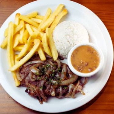 Você Não Vai Me Resistir!!!! Delicioso E Suculento Bife De Carne Nobre Com Tempero Especial Da Casa, Acompanhado Com Arroz Branco Soltinho, Feijão Carioca Com tempero Especial Da Casa, Macarrão, Fritas Crocante Embalagem 500 Ml