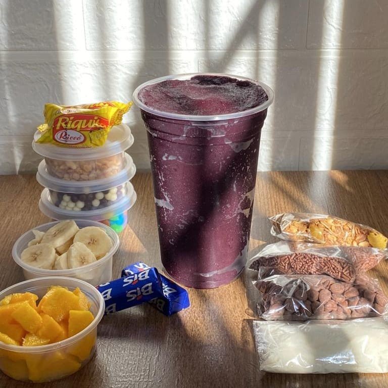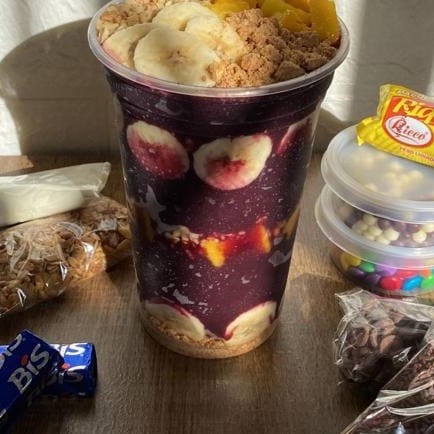 Desfrute de um delicioso Creme de Açaí de 700ml, cuidadosamente preparado e meticulosamente apresentado em camadas distintas para uma experiência gastronômica única. Personalize seu prato ao escolher quatro acréscimos à sua escolha, perfeitamente posicionados em camadas dentro do copo, proporcionando uma mistura perfeita de sabores. Uma verdadeira delícia que celebra o autêntico sabor do açaí!