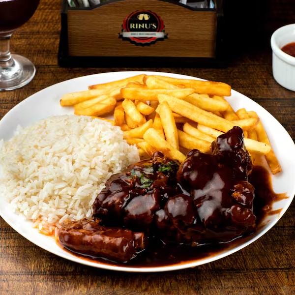 Arroz Branco, Feijão Opcional, Costelinha ao Molho Barbecue e Batata Frita. Acompanha Refrigerante 200 ml. Em caso de falta do refrigerante escolhido será enviado outro sabor conforme disponibilidade do restaurante.