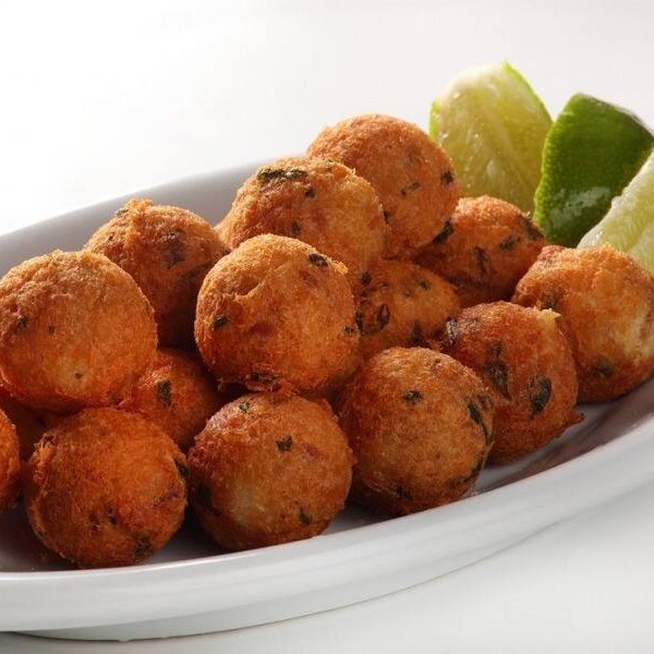 Delicioso bolinho de bacalhau de 280 g, contém 15 unidades aproximadamente.