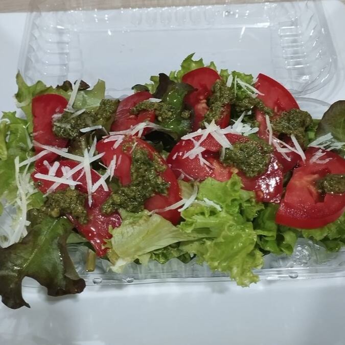 Deliciosa Salada mix de folhas com tomate e molho Pesto