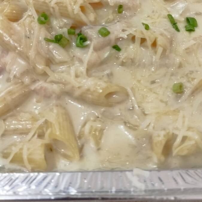 Peito De Frango Grelhado Com Penne Ao Carbonara
