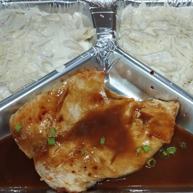 +- 200 gr Escalope de file minhom com penne ao carbonara+ Tilapia grelhada com pure e arroz +- 200 grs + salada do chef +2 suco de laranja Integral +2 Bombom Ouro Branco