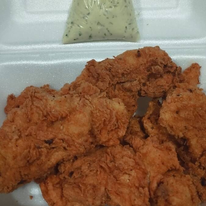 Delicioso filé de frango frito a moda kfc de 300 g, acompanha molho de maionese verde.