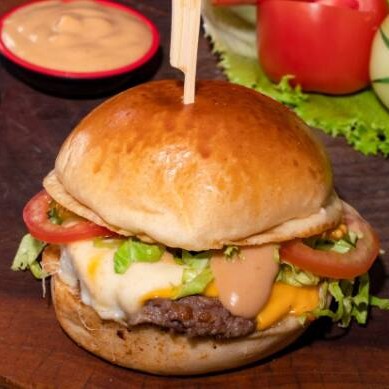 Pão brioche, blend artesanal bovino 130g, queijo mussarela derretido, cheddar cremoso, molho especial da casa.