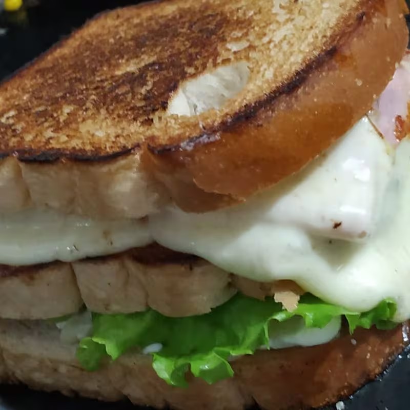 Pão de Forma, 2 presunto, 2 mussarela, maionese caseira(legumes), alface e tomate