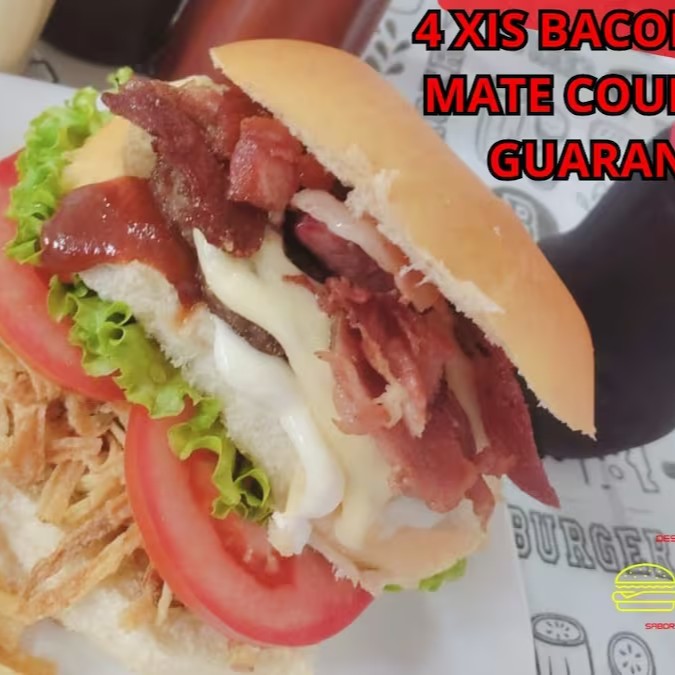 4 Xis Bacon caprichados, com hambúrguer suculento, queijo derretido, bacon, alface, tomate e aquela batata palha que faz toda a diferença. Para acompanhar, um Mate Couro Guaraná de 2 litros bem gelado! Tudo isso por um desconto incrível.