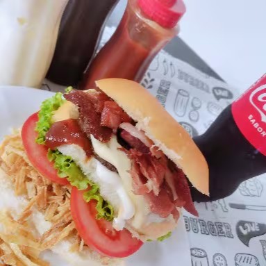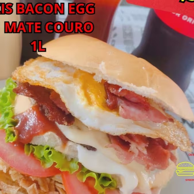 O combo mais vendido da casa! Três Xis Bacon Egg, com hambúrguer suculento, queijo derretido, bacon crocante e um ovo no ponto perfeito. Para acompanhar, um Mate Couro 1l bem gelado.