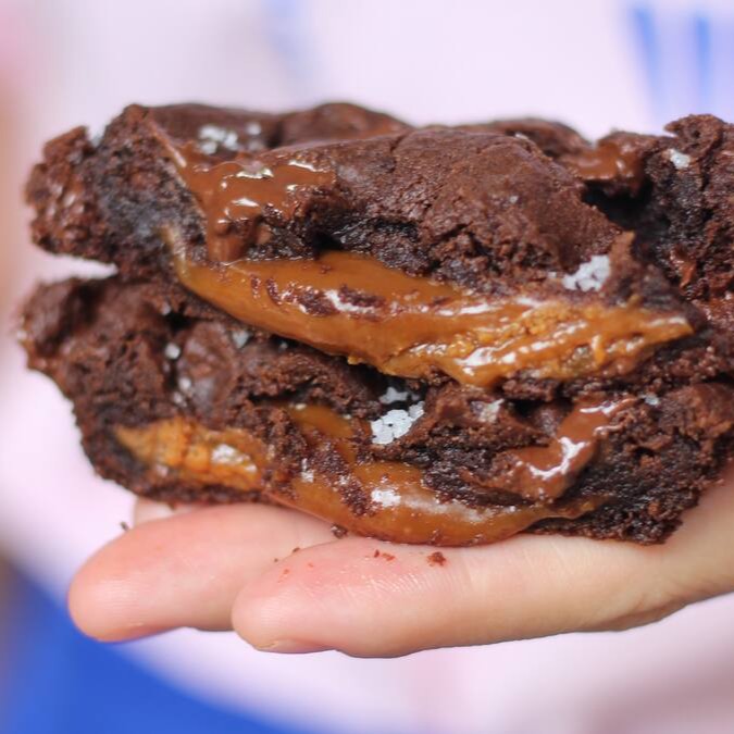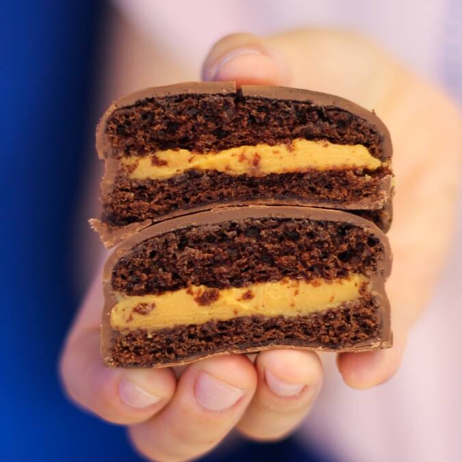 Cookie de chocolate estilo Ny com gotas de chocolate gold, recheado com caramelo e flor de sal no topo.