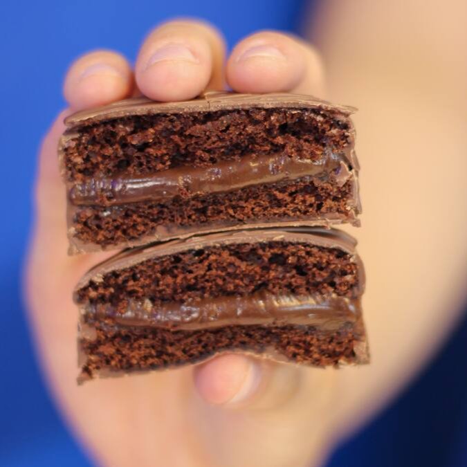 Nosso mais tradicional pão de mel tem massa molhadinha de cacau e mel com recheio de doce de leite e deliciosa cobertura de chocolate.