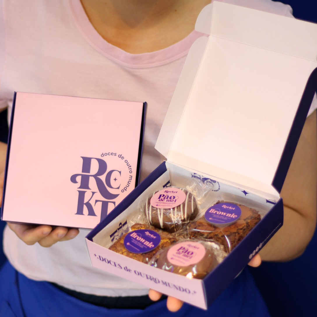 Escolha até 4 doces de sua preferência (entre pães de mel, brownies e palha) que montamos na caixa para presente.
