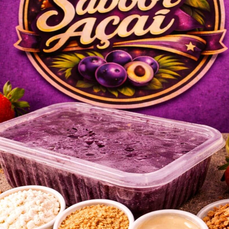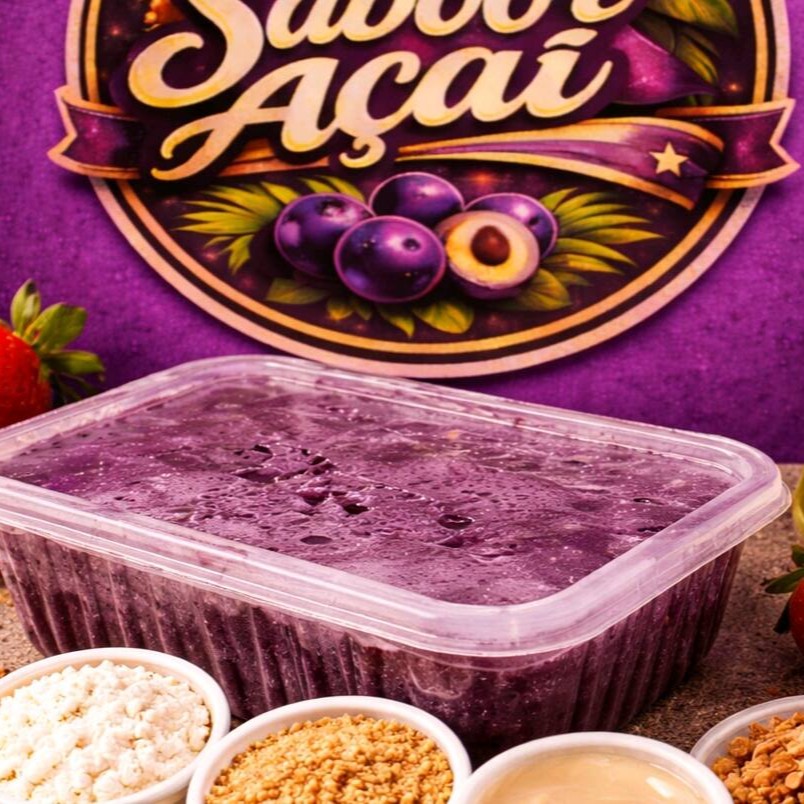 Açai,Leite em pó, Leite condensado, Paçoca, Granola.Observação: Você recebe cada complemento separadamente para combinar dentro do pote de açaí dentro de sua casa,criando sua própria experiência.