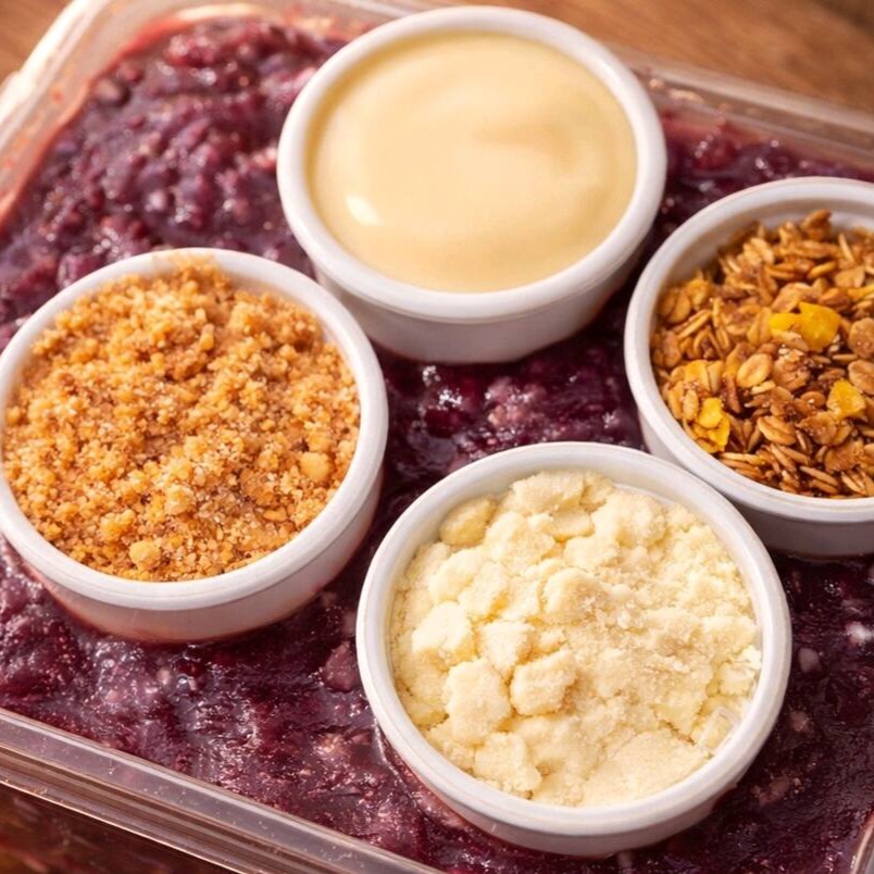 Observação: Você recebe cada complemento separadamente para combinar dentro do pote de açaí dentro de sua casa,criando sua própria experiência.