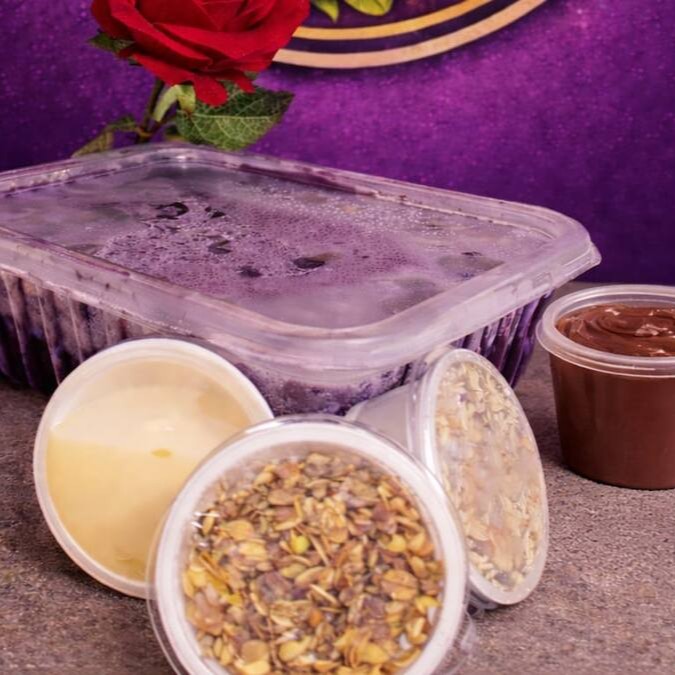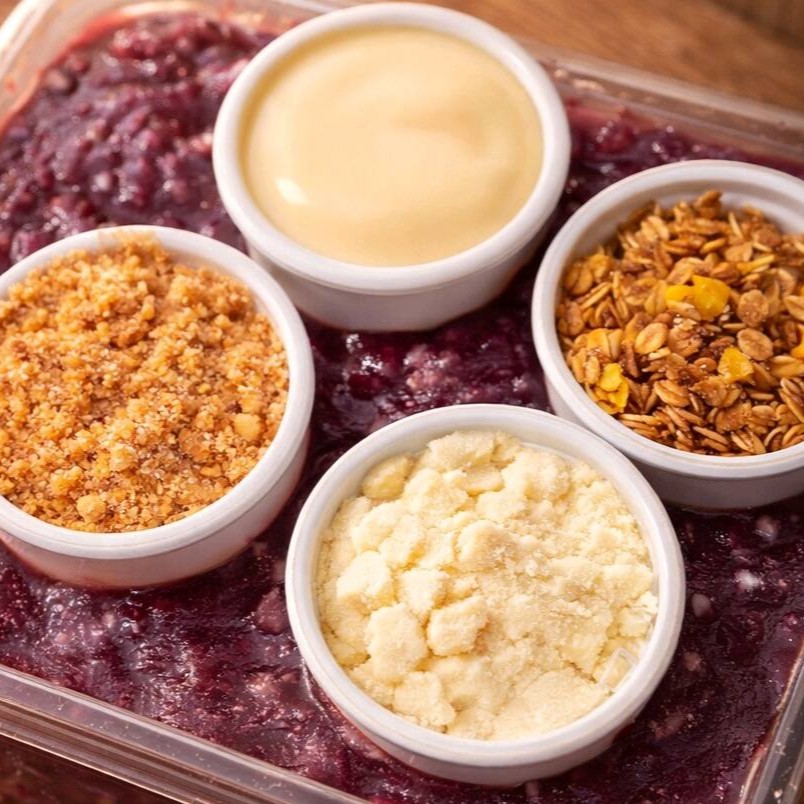 Observação: Você recebe cada complemento separadamente para combinar dentro do pote de açaí dentro de sua casa, criando sua própria experiência.