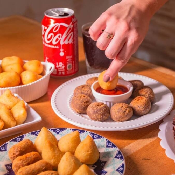 100 salgados a sua escolha até 10 opções salgados tamanho festa 22 gr + 1 Coca Cola 2 l.salgados fritos e entregues na mesma hora