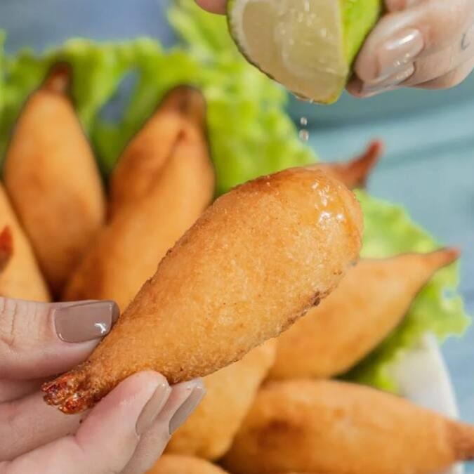 10 Unidades Coxinha Camarão c/ requeijão Camafeu (Sensação da casa) fritas na hora sequinhas e crocantes