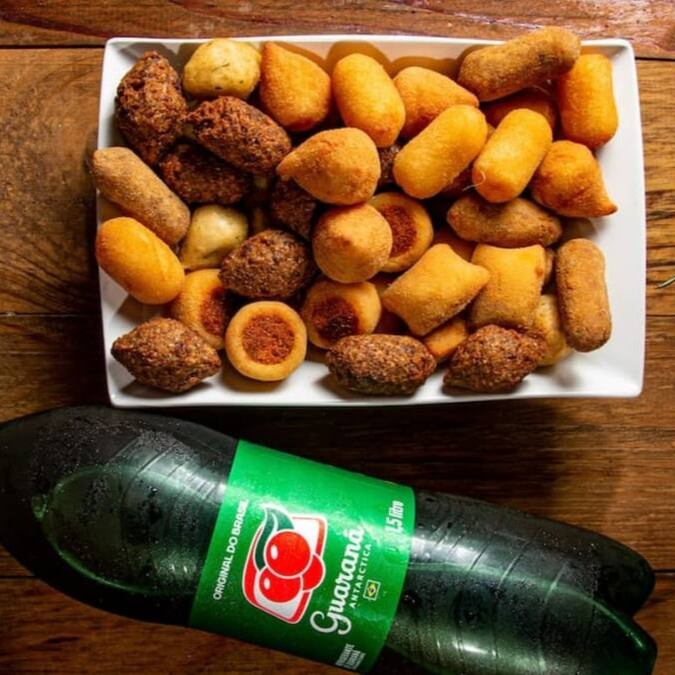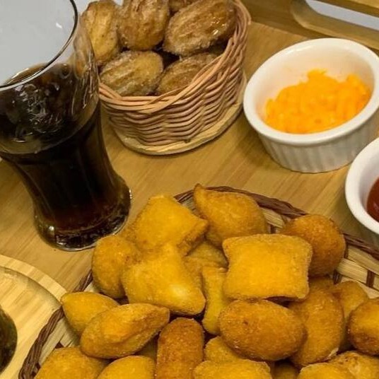 30 salgados fritos a sua escolha 1 refri 200 ml salgadinhos fritos na hora sequinhos e crocantes + 12 mini churros