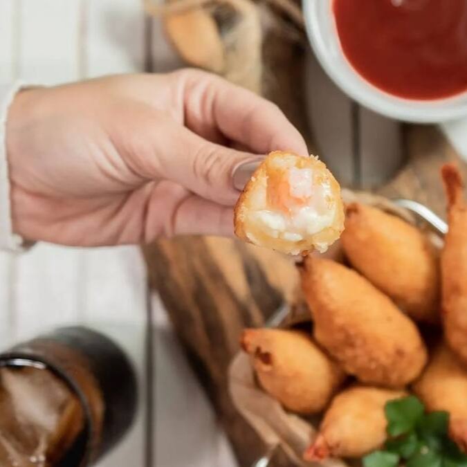 20 Unidades Coxinha Camarão c/ requeijão Camafeu (Sensação da casa) fritas na hora sequinhas e crocantes