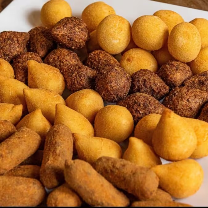 Salgados tamanho festa aprox 22 gr fritos na hora sequinhos e crocantes