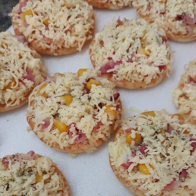 Mini pizza Bacon E Milho bandeja congeladas basta aquecer no forno ou microondas mini pizza 7 cm