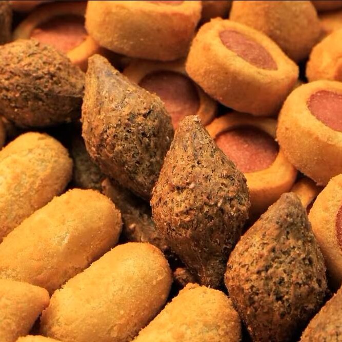 Salgadinhos fresquinhos e crocantes, fritos na hora.
