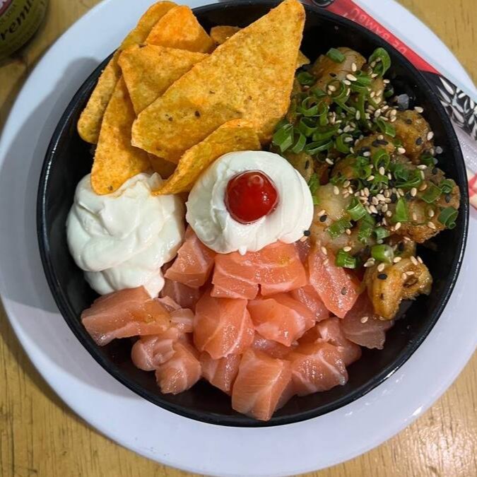 Poke Sakura Mix – Camarão + Salmão + Doritos + Cream Cheese