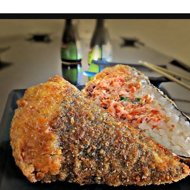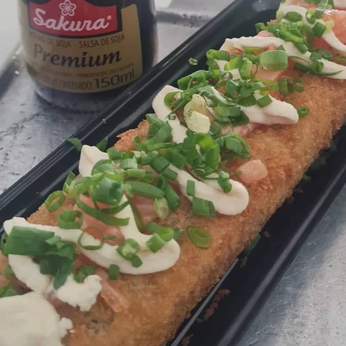 #5 uni Uramaki pate salmão alho frito e #cebolinha