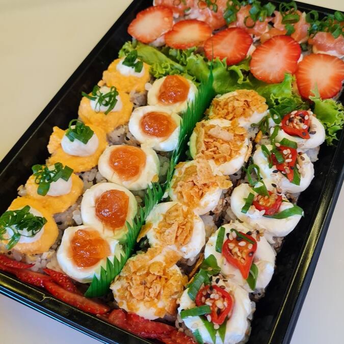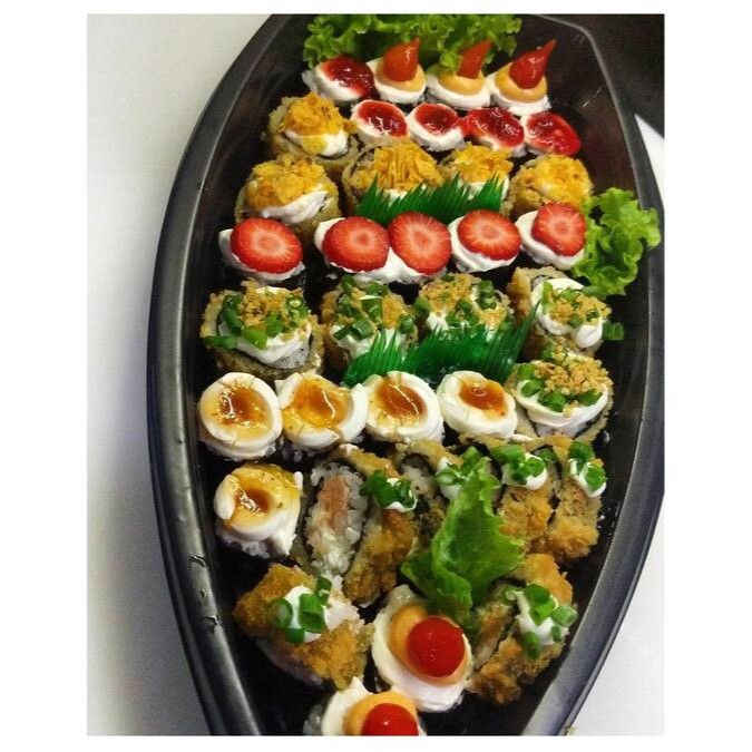 Experimente a nossa incrível Barca Gourmet, uma explosão de sabores e combinações únicas de sushi premium! Com 35 peças de sushi trufados, você vai se deliciar com os famosos hots: geleia de pimenta, geleia de morango, cheddar, morango/fruta, cream cheese com alho frito e cebolinha, Filadélfia tradicional e cream cheese com Doritos. Uma combinação perfeita de ingredientes frescos e irresistíveis. Não perca a chance de provar essa maravilha!