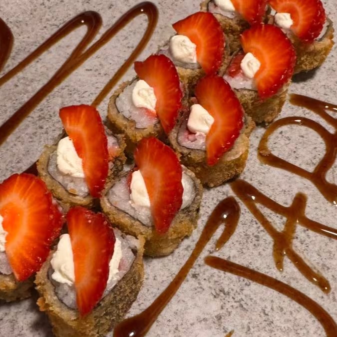 Tentação Oriental Morango : Morango fresco envolto em cream cheese cremoso, criando uma combinação suave, leve e irresistível!