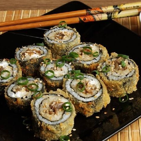 Hot Filadélfia Tradicional(10 Unidades), recheados com salmão fresco, cream cheese cremoso e cebolinha. Empanado e frito na hora.