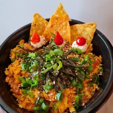 Experimente o equilíbrio perfeito de sabores no nosso Poke Sakura Mix! Uma combinação irresistível de camarão suculento, salmão fresco em cubos, crocante de Doritos e a cremosidade do cream cheese, sobre uma base de arroz japonês, acompanhado de vegetais frescos e molhos especiais.