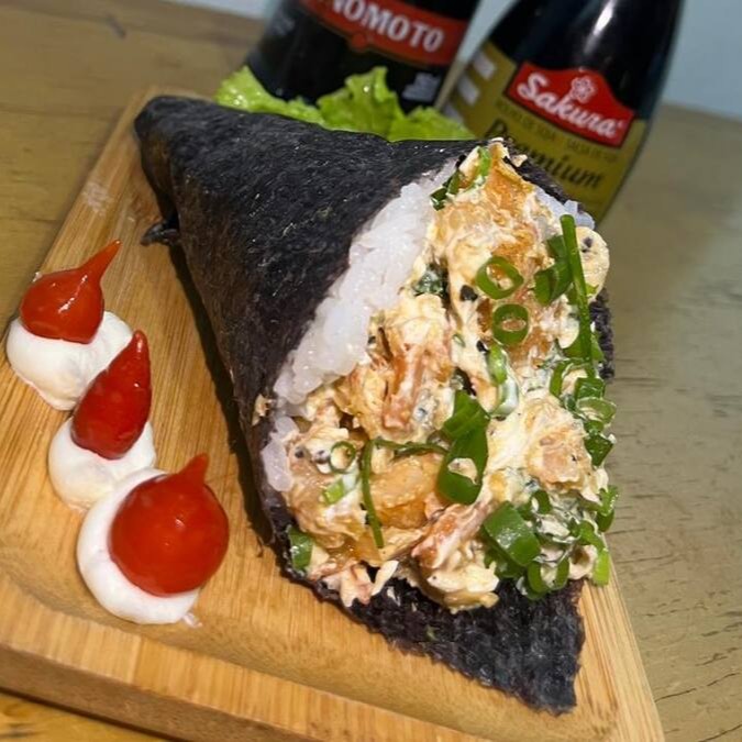 Experimente o incrível Temaki Hot Skin + Mini Coca 200 Ml da nossa promoção! Delicioso temaki de pele de salmão empanada com creme cheese e cebolinha, envolto em uma crocante farinha especial Panko. Uma combinação perfeita de sabores e texturas que vai te surpreender. Aproveite agora mesmo essa oferta e delicie-se comelhor da culinária japone