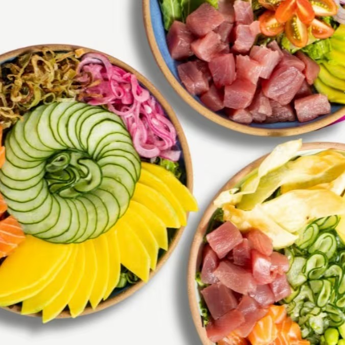 Mix de Folhas, Abacaxi, Manga, Tomate Cereja, Edamame, Pepino, Atum Grelhado e Molho Fresh.
