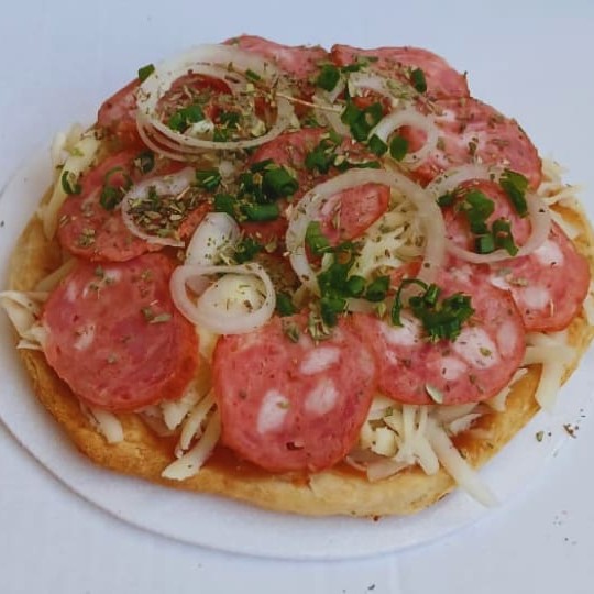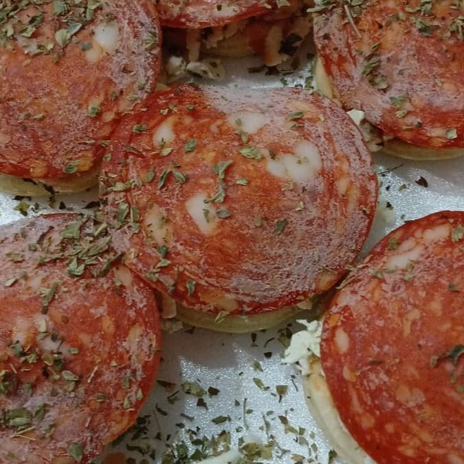Molho de tomate, mussarela, calabresa, cebola, orégano. 6 unidades - aprox. 6cm cada