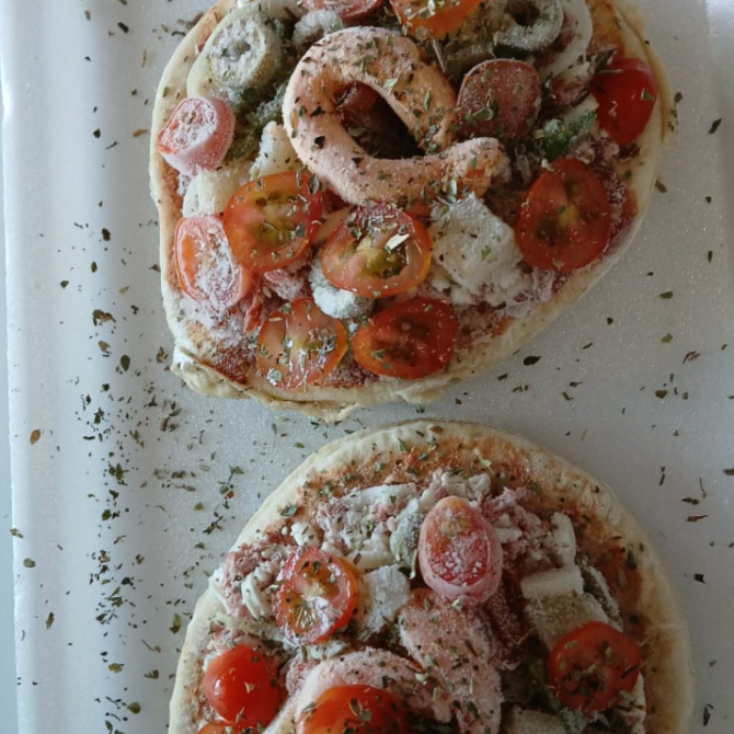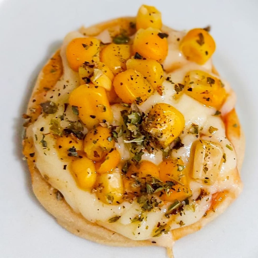 Molho de tomate, mussarela, milho, orégano 6 unidades - aprox. 6cm cada