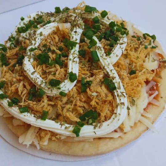 Molho de tomate, mussarela, frango, requeijão cremoso, orégano. 6 unidades - aprox. 6cm cada