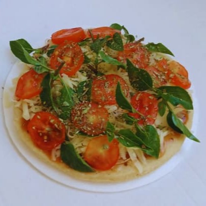 Molho de tomate, manjericão, mussarela, tomatinho, orégano. 6 unidades - aprox. 6cm cada