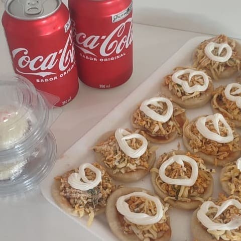 Nosso combo acompanha uma bandeja de mini pizza de frango com Catupiry 15un, Marguerita, Calabreza, Napolitana, 2 refrigerantes Coca-Cola natural, Coca cola s/ açucar, Sprit ou Fanta 200 Ml......Aproveite! Ingredientes feito na hora,e de boa qualidade!