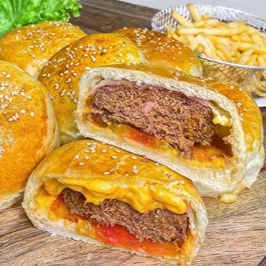 Hamburgão Fechado Num Delicioso Pão Super Macio Caseiro.