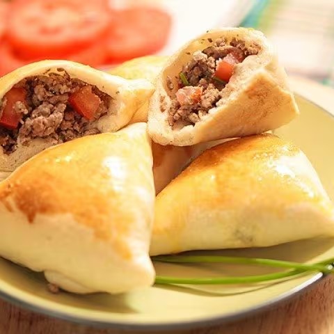 Deliciosa Esfirra Com Massa Artesanal E Fofinha,Recheada Com Uma Suculenta Carne Refogada No Alho E Cebola