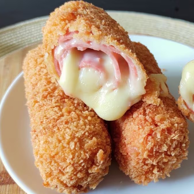 Enrolado de presunto e mussarela. O salgado é feito no ato do pedido chegando quentinho e saboroso!