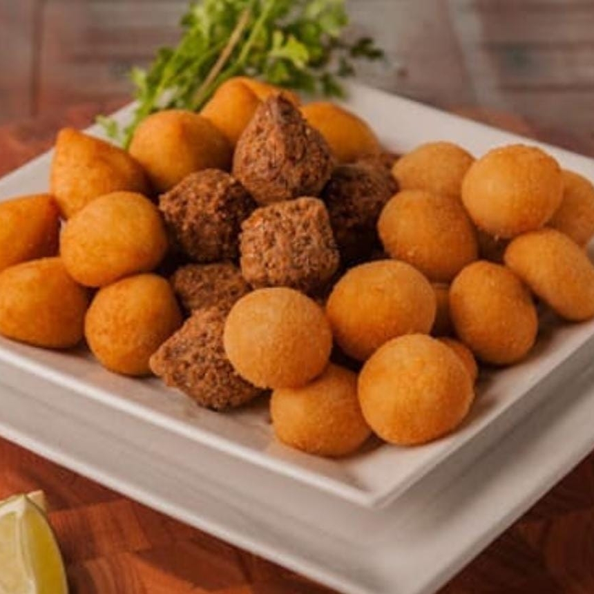 Coxinha, pastel de milho, palitinho de queijo, bolinha de mussarela e presunto, balãozinho de calabresa, kibe