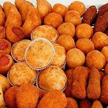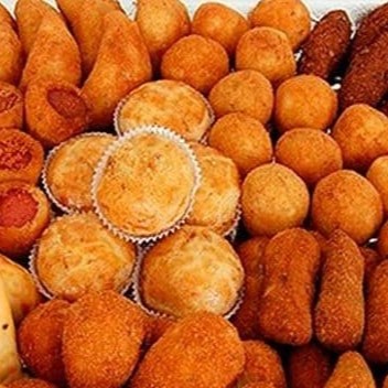 25 coxinhas, 25 empadas, 25 napolitano, 25 risoles de milho.