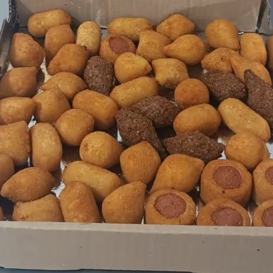 Coxinha, Croquete de Carne, Enrolado De Salsicha, Presunto e Mussarela, Bolinha De Queijo, Quibe, Rissole De Milho